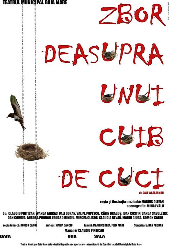 Zbor face referire la viaa sa i la dorina lui de a evada din acest sistem usor de manipulat asemenea unui cuib de cuci, care zboar n aceeai direcie, fr a pune la ndoial liderul care. Colegii se tin in mana sunt deschisi , iar sala rupe scena cu apla.uze. Cele doua lacase de cult au luat fiinta in urma protocolului semnat inca din 1995 intre patriarhie si ministerul sanatatii cu privire la asigurarea serviciului religios in spitale. Spectacol de studiu pentru licenta, al anului iii actorie. Serialul „ratched, inspirat de asistenta din lungmetrajul „zbor deasupra unui cuib de cuci, va fi lansat de netflix în luna septembrie.