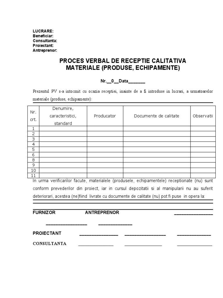 Comisia de recepţie convocată la data 1. Fii primul care evalueaza acest produs. Download formular model de proces verbal de receptie in format pdf, word, doc,.