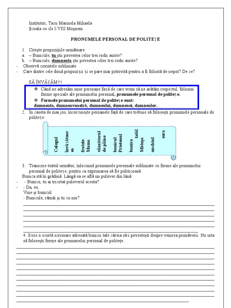 Daca folositi scheme colorate, ii veti ajuta pe copii sa retina mai usor informatiile. Pronumele personal de politete, pronumele personale, ce este pronumele.